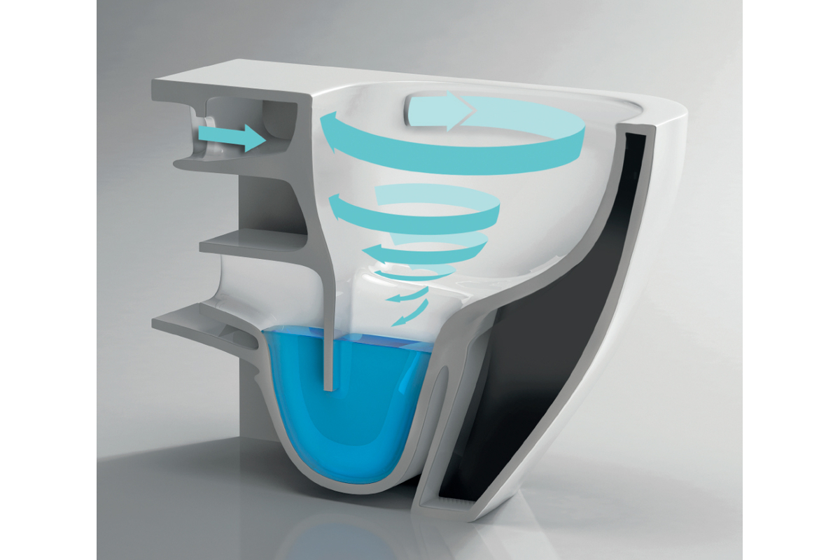 • Отсутствие брызг. Контролируемое завихрение воды предотвращает разбрызгивание и обеспечивает очистку почти всей внутренней поверхности.