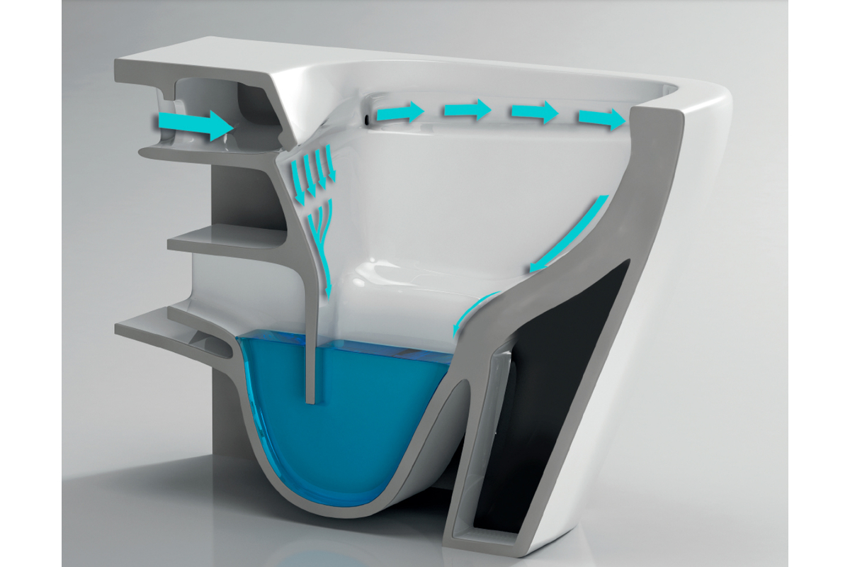 Такая технология смыва обеспечивает идеально гигиенический смыв при использовании меньшего количества воды.