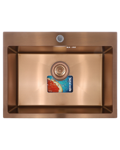 Мойка имеет цветное PVD покрытие. Оно наносится по схожей с хромированием технологии, имея при этом большую стойкость к механическим повреждениям.
