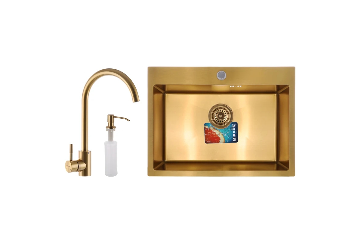 Мойка имеет цветное PVD покрытие. Оно наносится по схожей с хромированием технологии, имея при этом большую стойкость к механическим повреждениям.