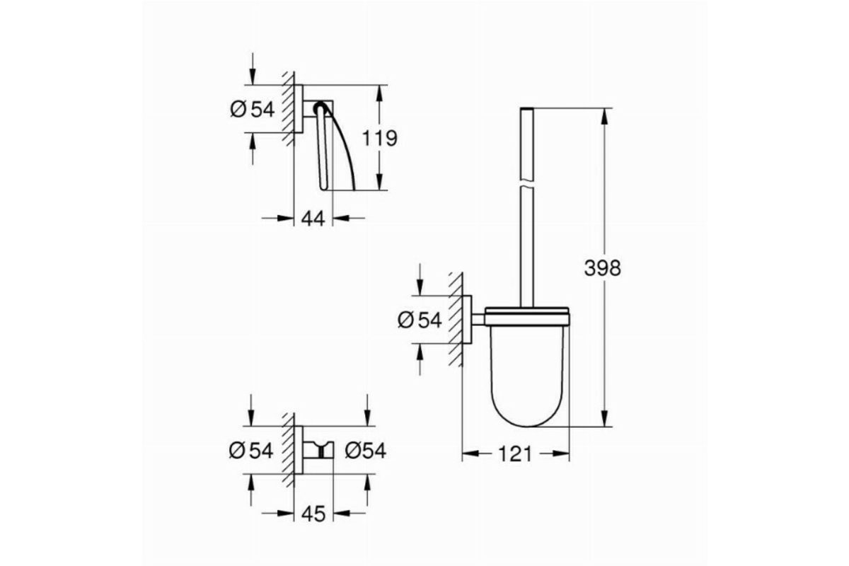 Крючок для халата, держатель для туалетной бумаги ( с крышкой), комплект с туалетным ершиком, этот комплект аксессуаров GROHE Essentials выполненный в износостойком хромированном покрытии станет идеальным выбором для вашей ванной комнаты. Все детали комплекта выполнены в дизайне, который не устареет со временем, а также покорит вас качеством исполнения. Дополните свою ванну с этим набором из трех аксессуаров.