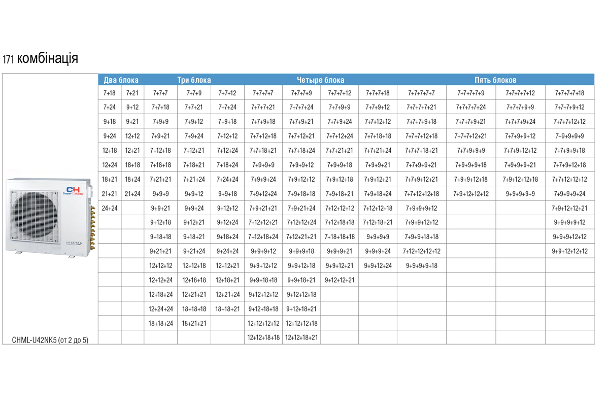 | Потребляемая мощность, кВт | Холод: 3,59 (1,30-4,90) / Тепло: 3,55 (1,30-4,40) |