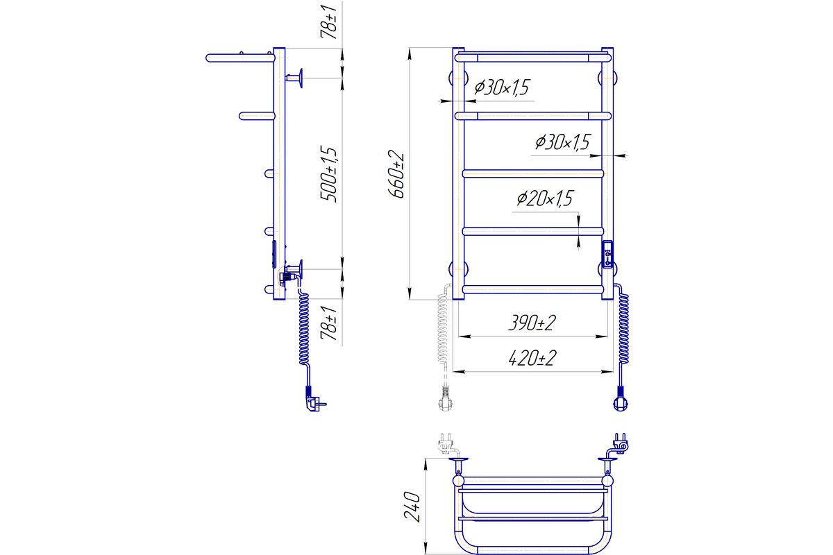 Главной особенностью данного полотенцесушителя является наличие таймера-регулятора, который позволяет запрограммировать его выключение через 3 или 6 часов на выбор, а также регулировать температуру полотенцесушителя в 3-х положениях (40 - 45 - 50 °C).