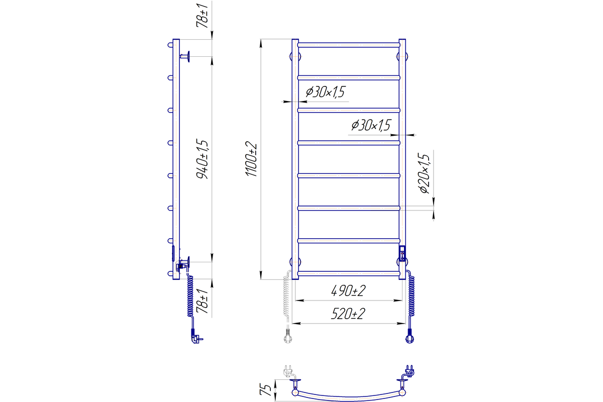 Главной особенностью данного полотенцесушителя является наличие таймера-регулятора, который позволяет запрограммировать его выключение через 3 или 6 часов на выбор, а так же регулировать температуру полотенцесушителя в 3-х положениях (40 - 45 - 50 °C).