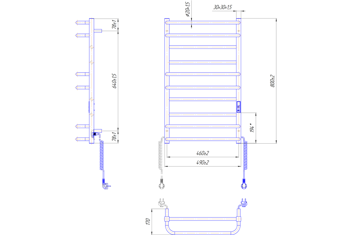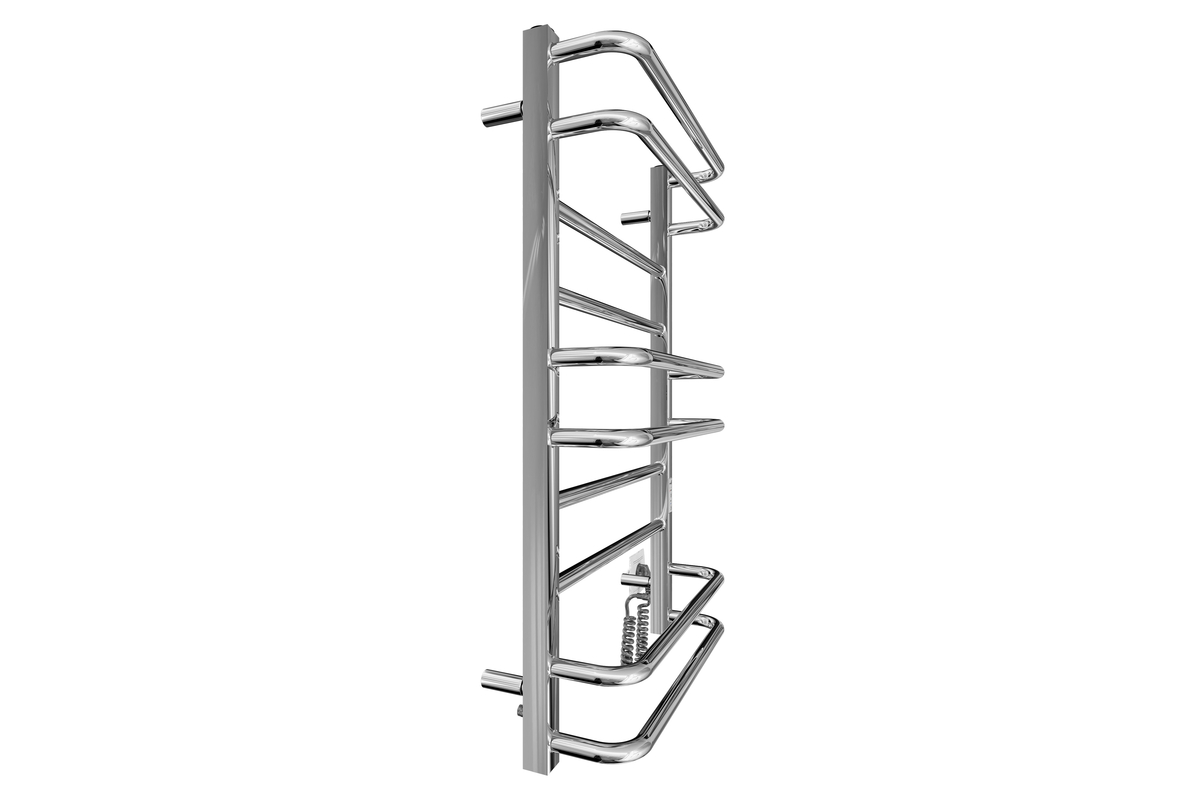 Вместо привычного шнура с фиксатором в конструкции изделия присутствуют разъемы на обоих стойках, позволяющие подключить полотенцесушитель к сети с любой стороны.