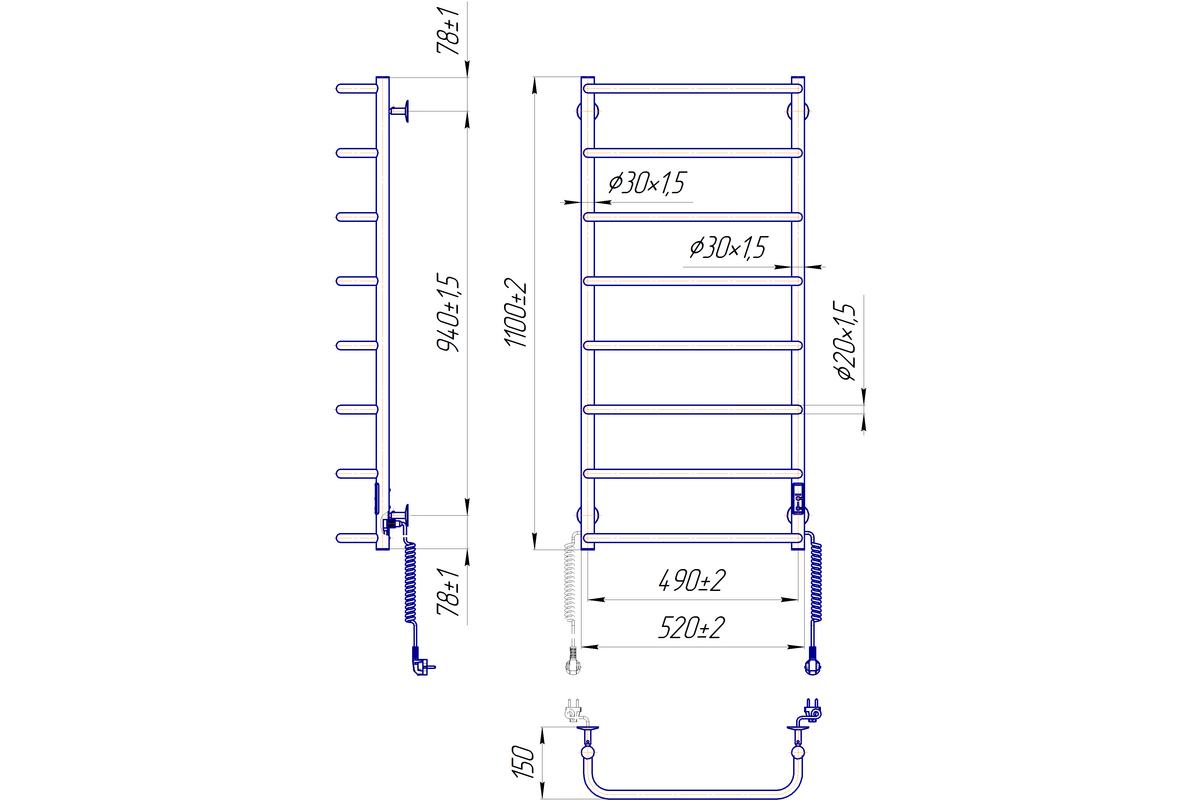Полотенцесушитель Mario Стандарт HP-ITR 1090x530 с таймером-регулятором 2.3.0217.10.P