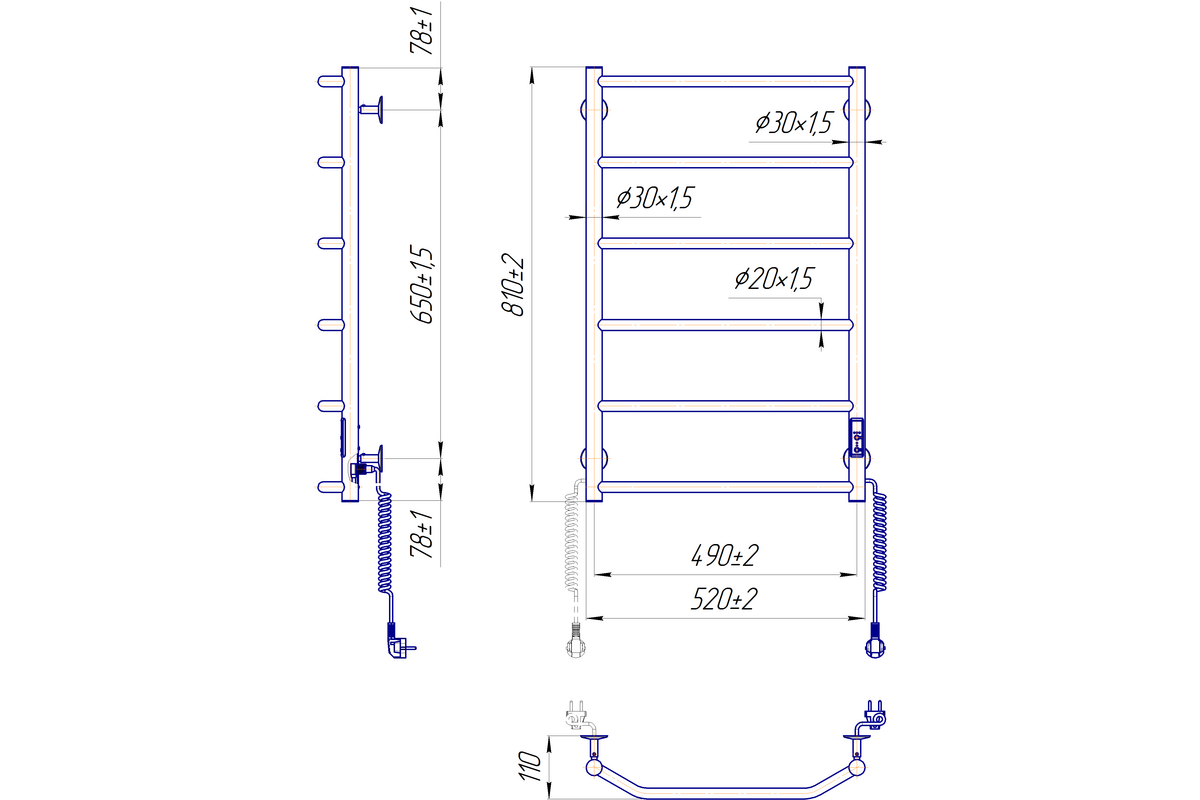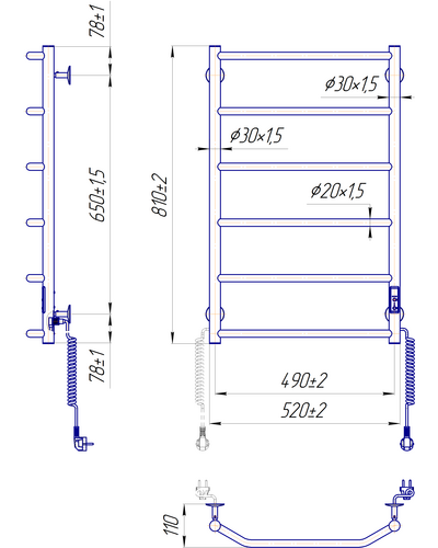 Главной особенностью данного полотенцесушителя является наличие таймерарегулятора, который позволяет запрограммировать его выключение через 3 или 6 часов на выбор, а также регулировать температуру в трех режимах (40 – 45 – 50°C).