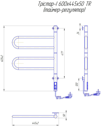 Полотенцесушитель Mario Тристар-ITR 600x445 с таймером-регулятором 2.3.0505.11.P