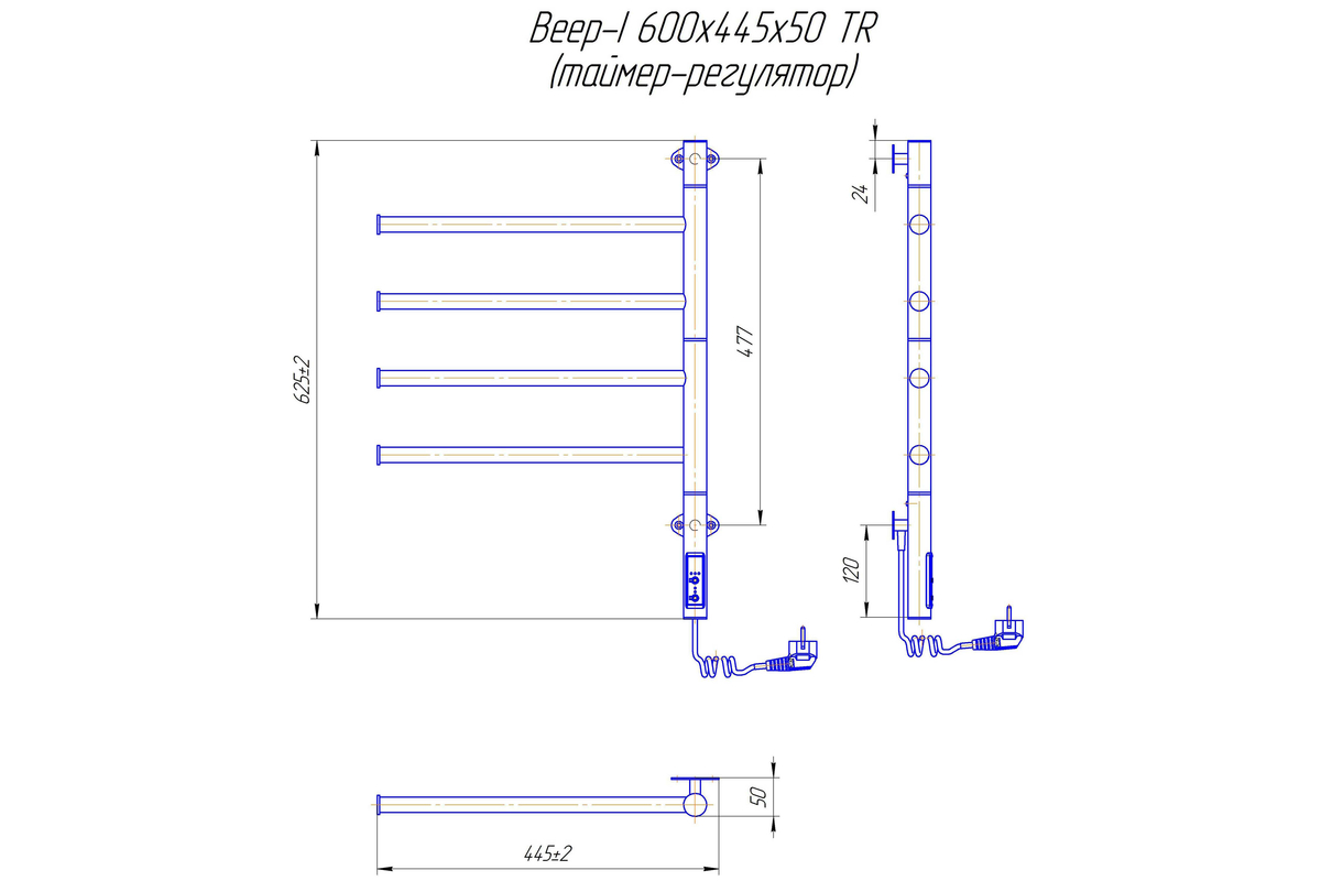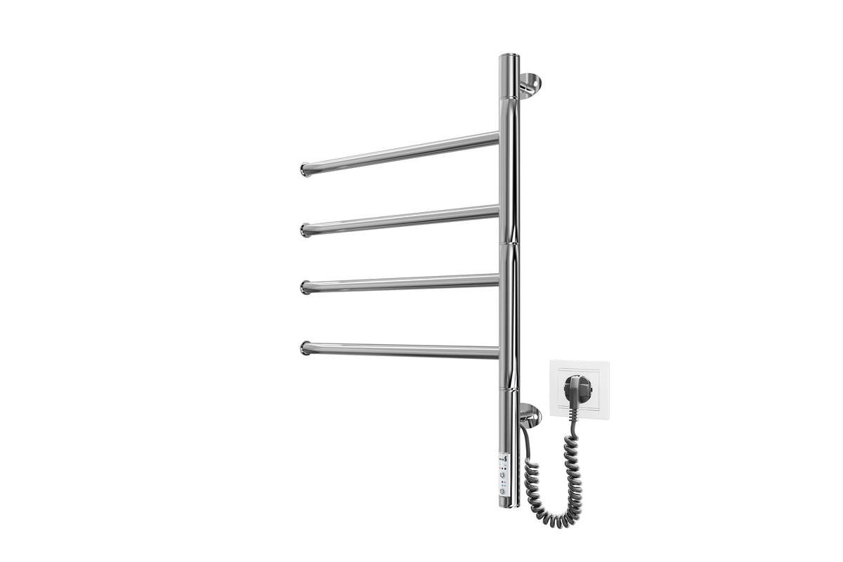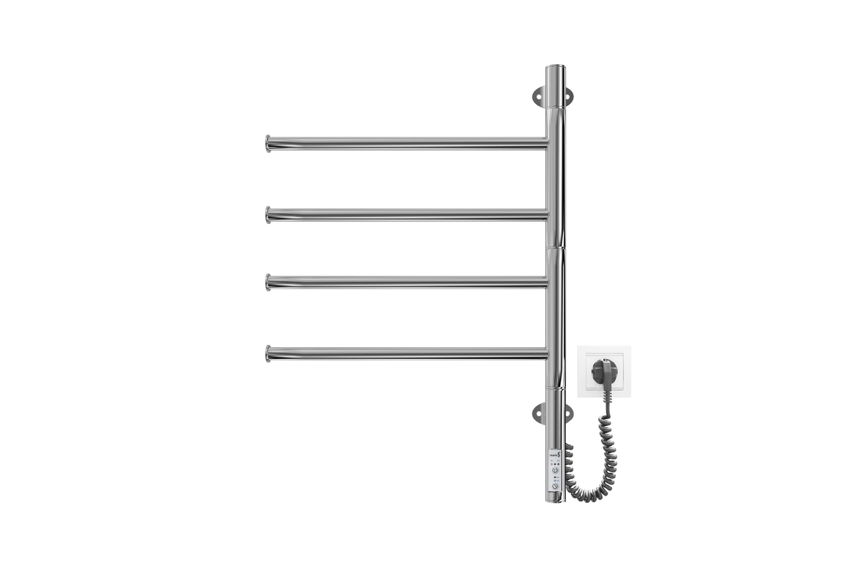 Главной особенностью данного полотенцесушителя является наличие таймера-регулятора, который позволяет запрограммировать его выключение через 3 или 6 часов на выбор, а также регулировать температуру в трех режимах (40 – 45 – 50°C).
