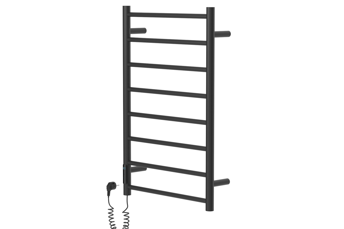 Полотенцесушитель Volle Rondo L, 120W, 500*800мм, сталь 304, 8 перемычек (4-4) круг, стойки круг, таймер, термостат 70°С, de la noche (чёрный) 9235.000104