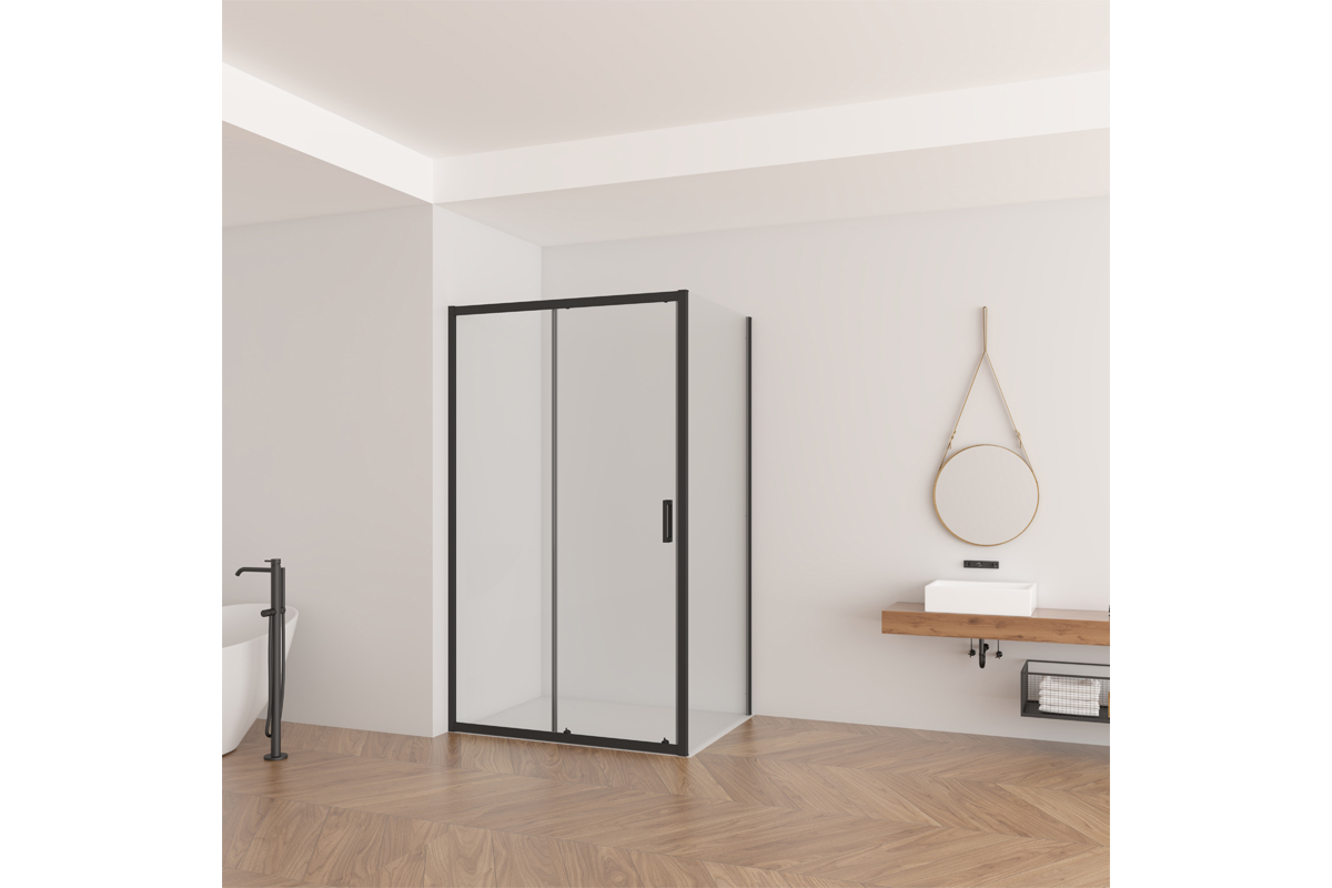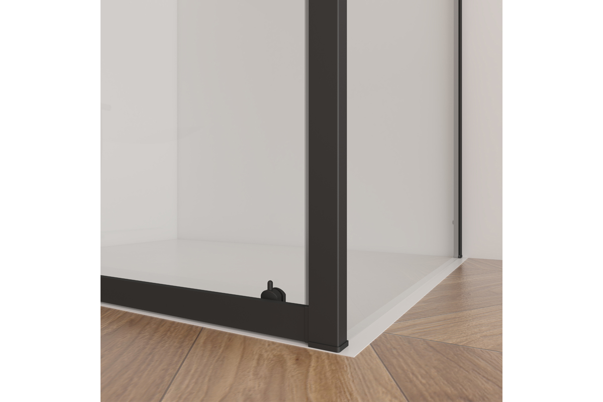 Соедините дверь для душевой кабины с неподвижной стеной и создайте пространство для душа от 80 х 100 до 80 х 120 см. В глянцевом или черном исполнении.