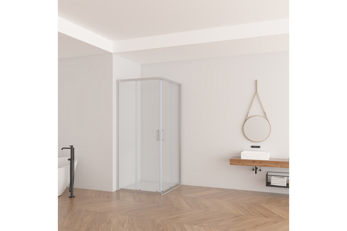 Изделие состоит из двух неподвижных частей и двух частей в виде раздвижной двери. Устанавливается в облицованном кафелем углу ванной комнаты на поддоны RAVAK Angela, Perseus, Perseus Pro, Perseus Pro Flat, Perseus Pro Chrome или непосредственно на пол со встроенным душевым каналом или трапом.