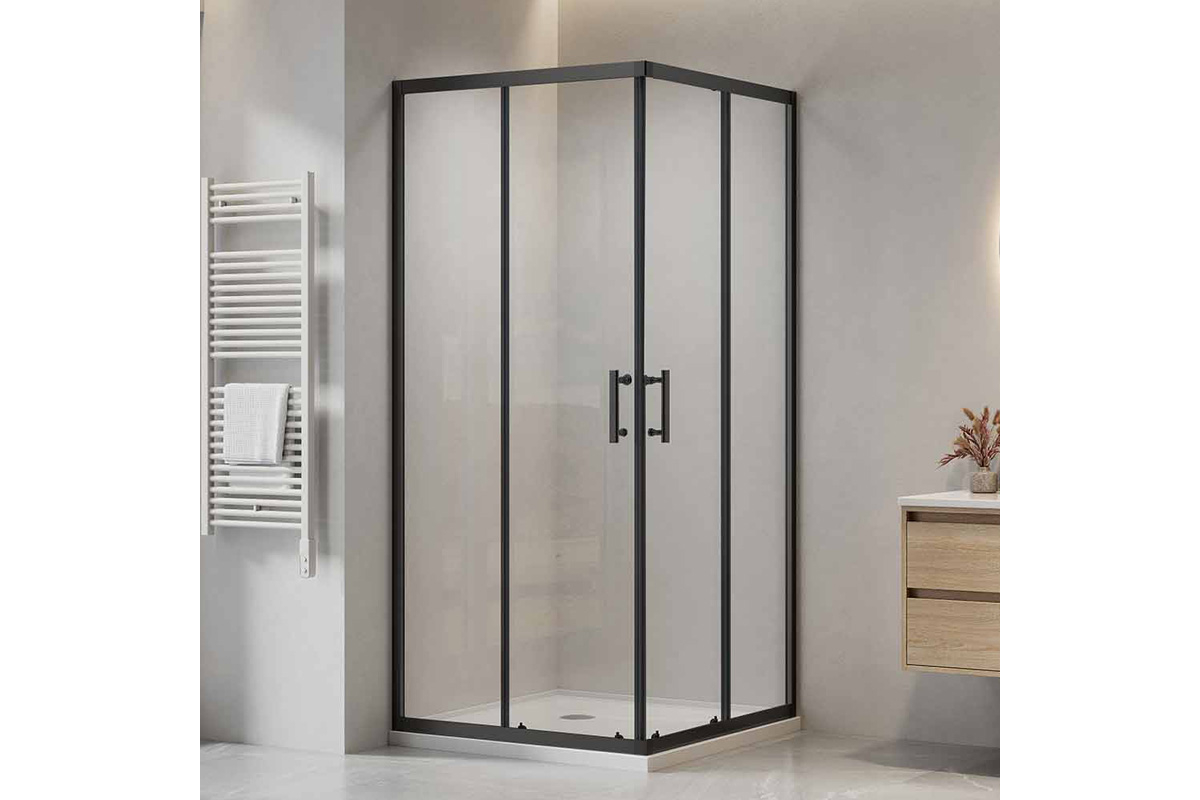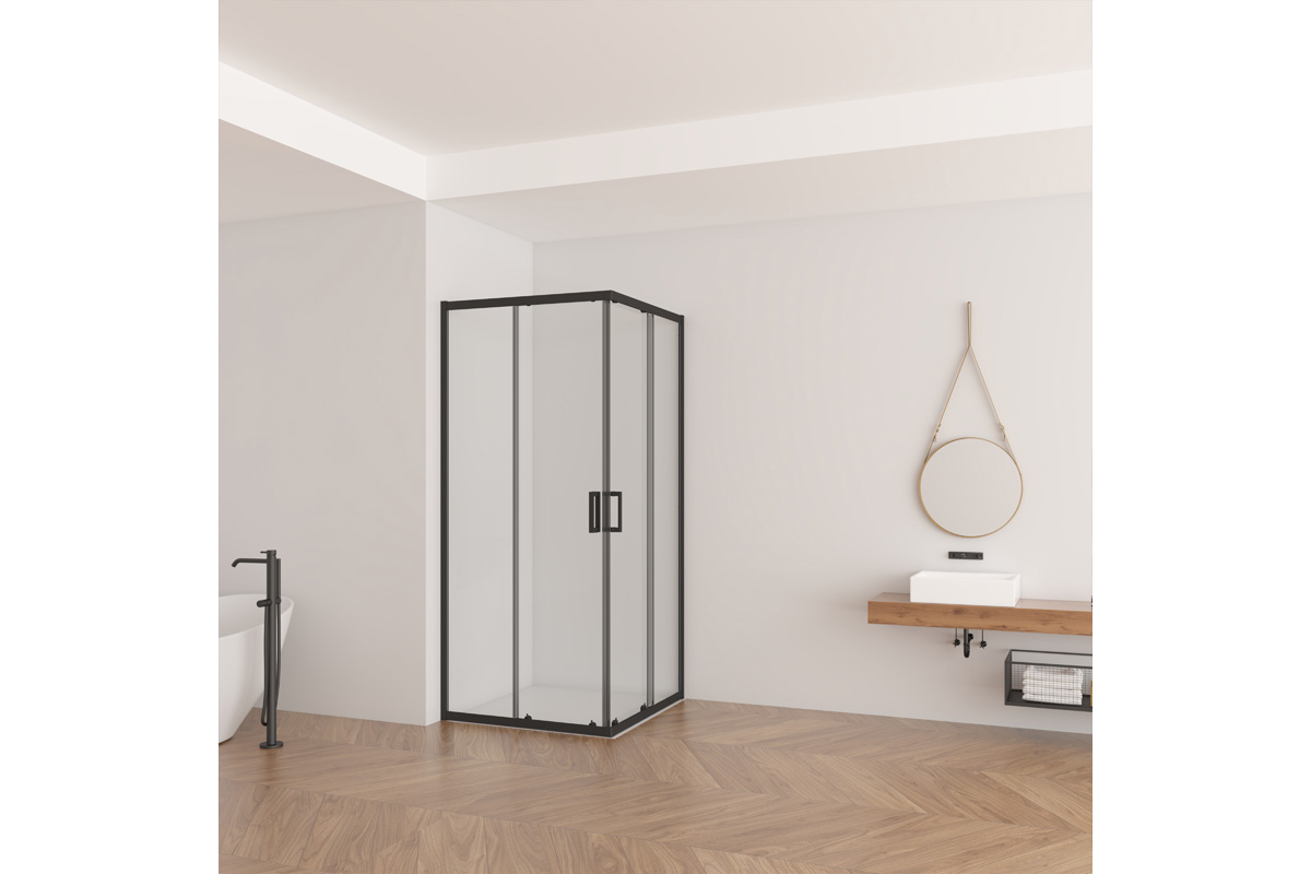 Удобная и очень крепкая душевая кабина с большим угловым входом без возможности сочетания размеров. В глянцевом или черном исполнении.