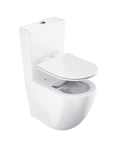 Отдельностоящий WC kombi Optima RimOff с сиденьем и системой медленного складывания SoftClose. В белом исполнении. Отвод vario.