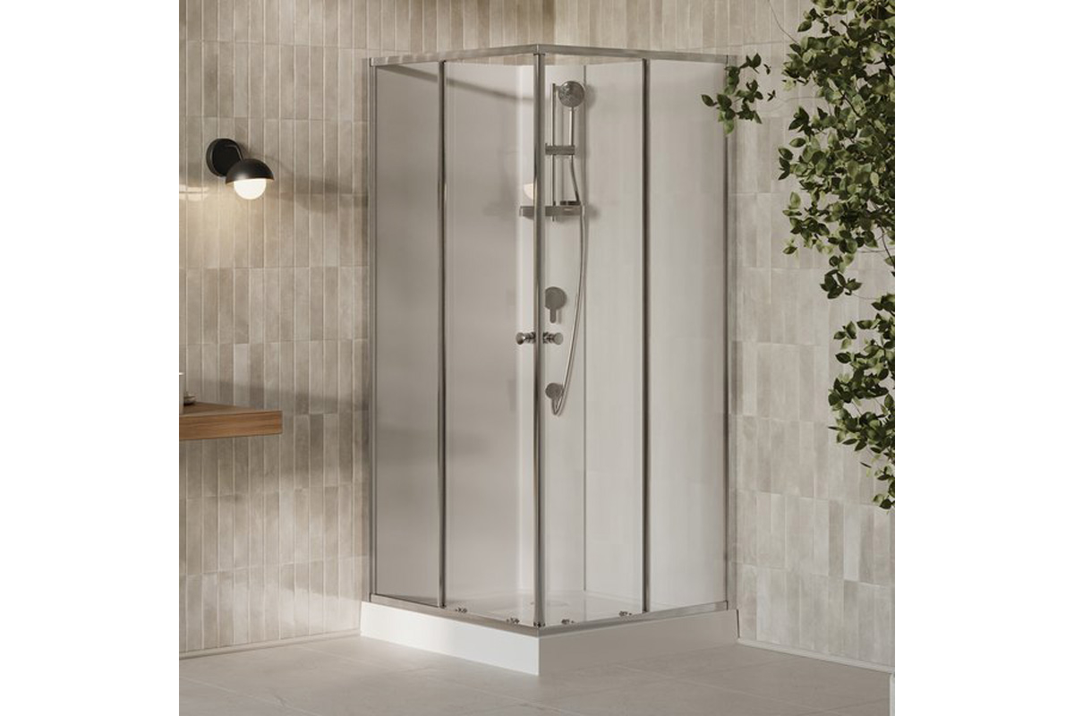 В комплект также входят душевый акриловый поддон, сифон, смеситель для душа, штанга для душа, душевая воронка и душевой шланг.