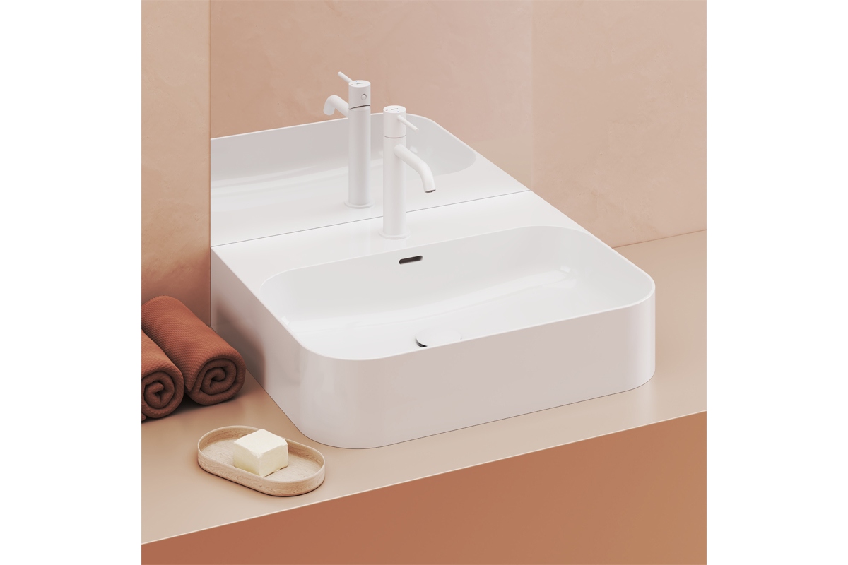 Умывальник Ceramic R Slim Wall изготовлен из высококачественной керамики и предназначен для установки на столешницу под умывальник в форме L или I или для установки на тумбу для умывальника SUD 260.01.