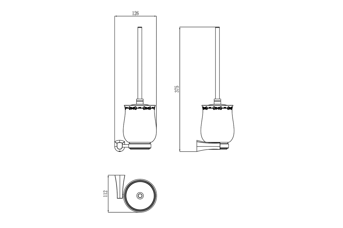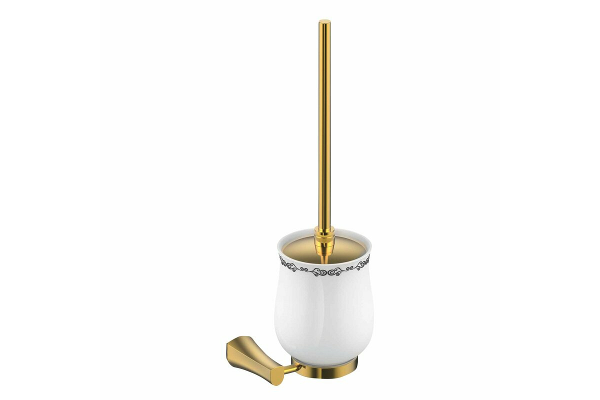 Щетка для унитаза, латунь/керамика, золото/белый с декором, без крышки