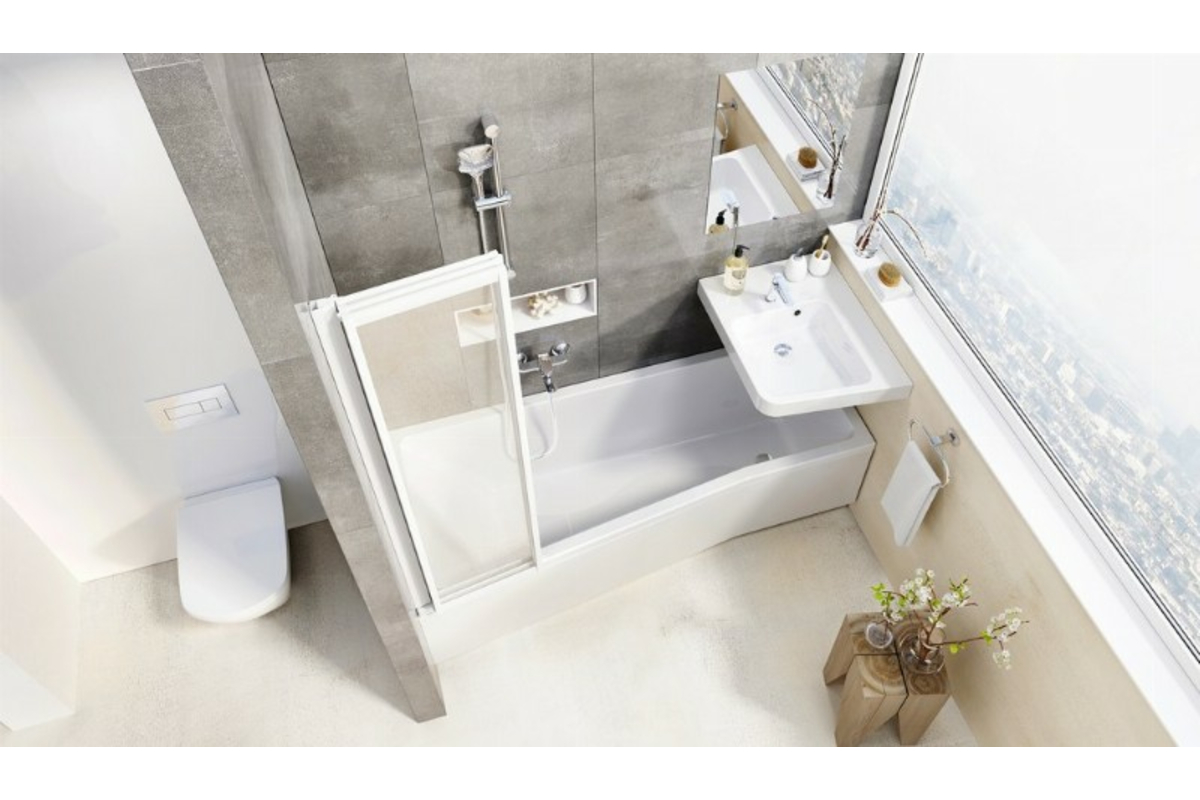 Штора состоит из трех подвижных частей, которые полностью складываются вовнутрь ванны. Штору можно установить на ванну BeHappy, другие прямоугольные ванны с ровным передним бортом или на какую-либо классическую прямоугольную ванну с ровным передним бортом.
