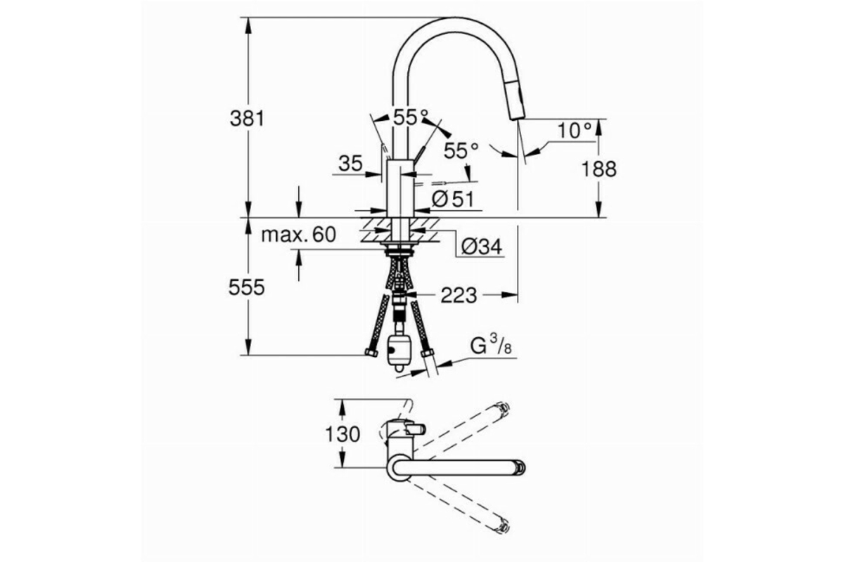 GROHE EasyDock легкое вытягивание и возврат на место выдвижного излив