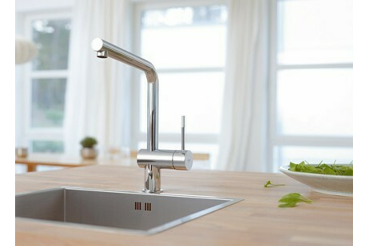 Производитель: Grohe (Германия) Minta Смеситель однорычажный для мойки, DN 15 монтаж на одно отверстие GROHE SilkMove® керамический картридж Ø 46 мм регулировка расхода воды поворотный трубкообразный излив выдвижной излив с аэратором встроенный обратный клапан гибкая подводка система быстрого монтажа с защитой от обратного потока GROHE StarLight® хромированная поверхность радиус поворота 360° с возвратной пружиной