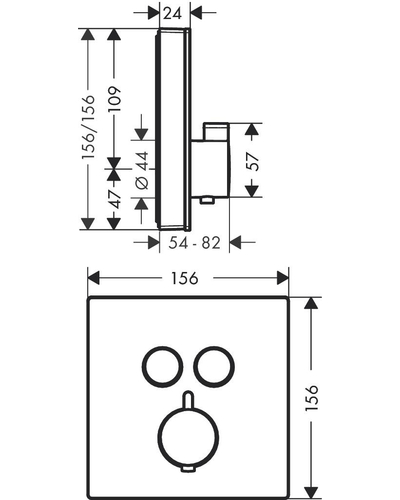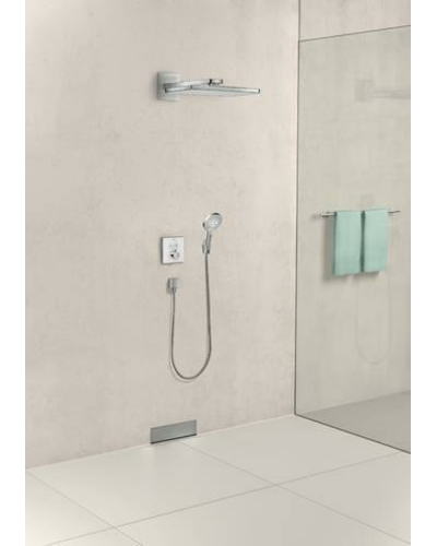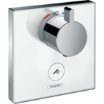 Термостат для ванны, встраиваемый в стену, с двумя запорными вентилями,стеклянная панель, белый/хром.