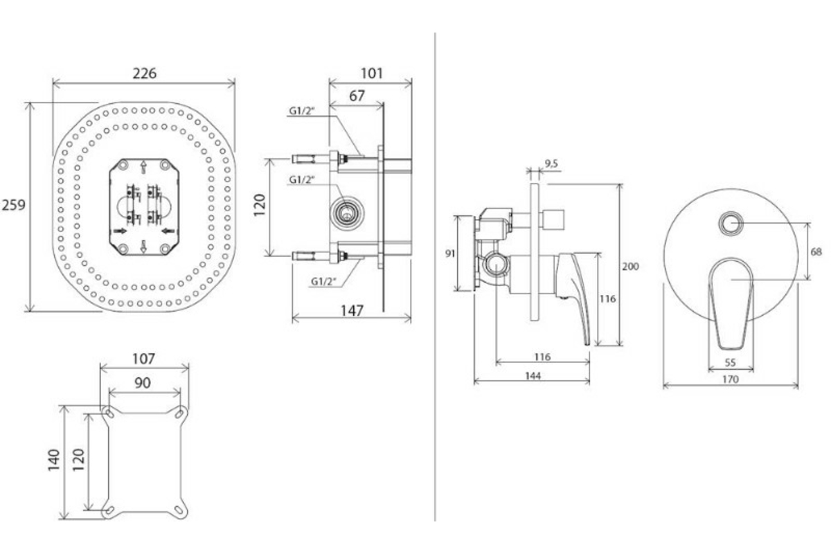 Смеситель RAVAK Neo NO 065.00 скрытого монтажа с переключателем для R-box (X070045)