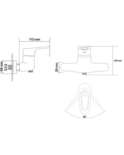 Смеситель для душа однорычажный, хром, в комплекте: шланг, лейка, держатель. Материал - латунь.