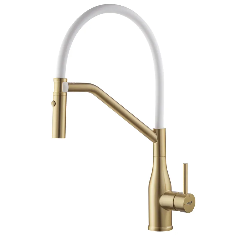 Смеситель для кухни Koer KI-70026-12 с белым силиконовым изливом золото мат (KR5212)