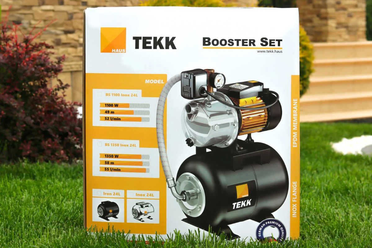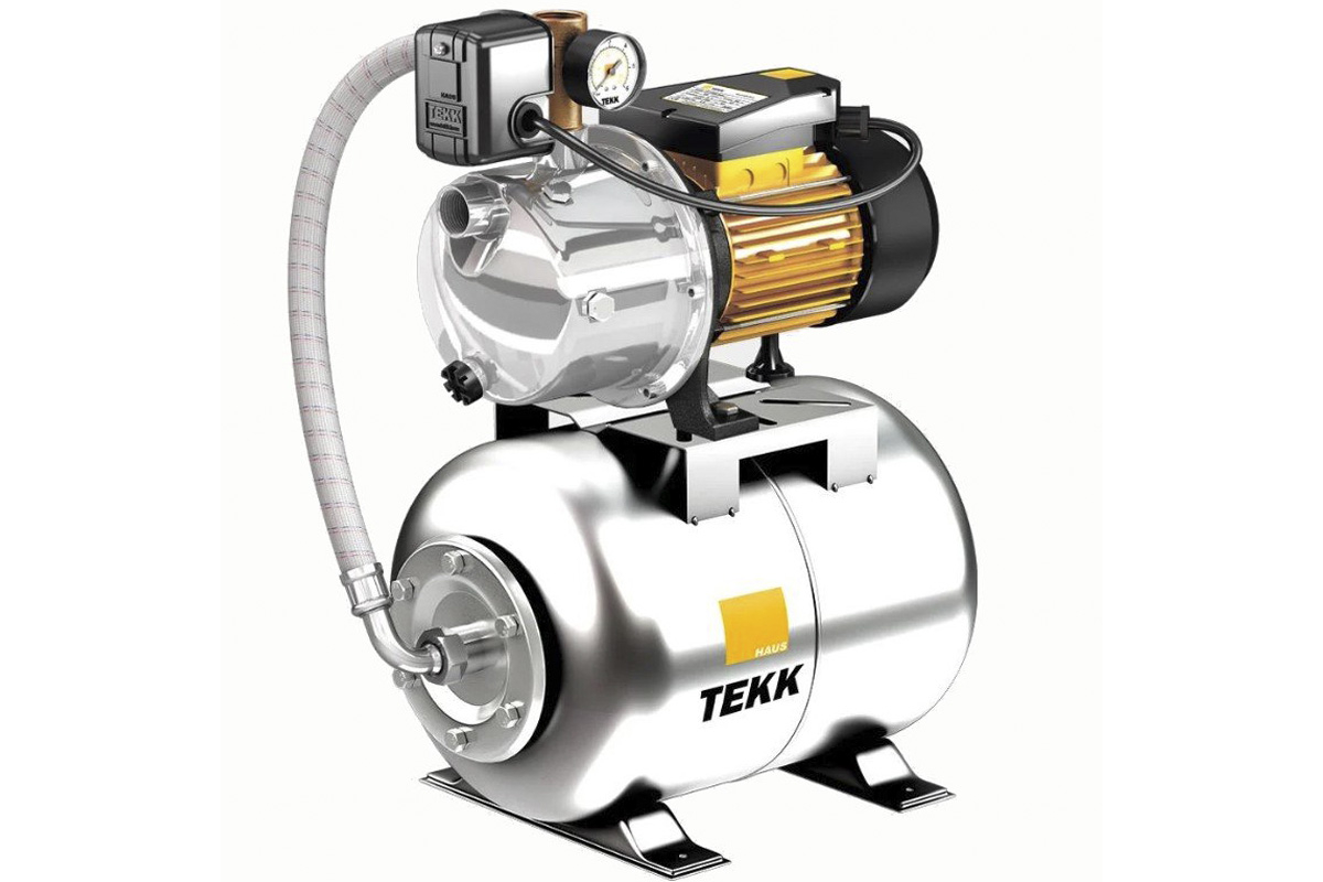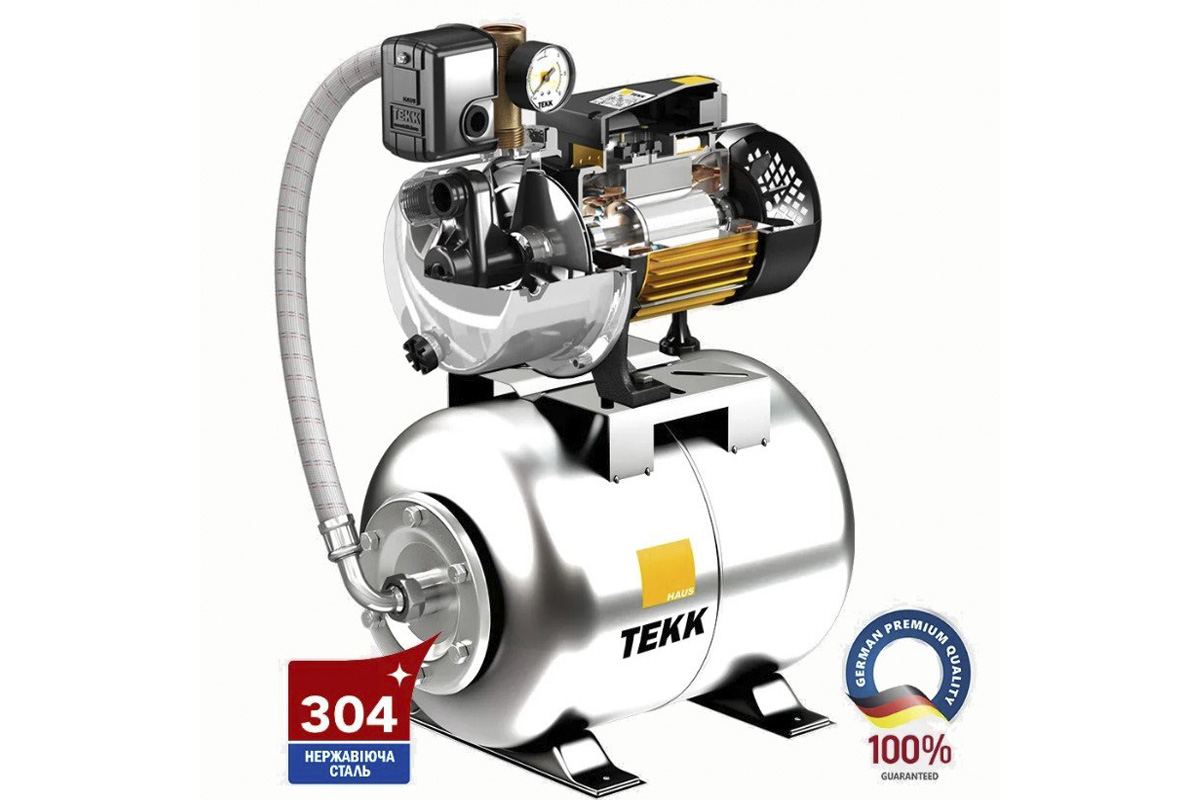 Насосная станция TEKK HAUS BS 1350 Inox 24L Inox (бак из нержавеющей стали, фланец из нержавеющей стали, EPDM мембрана) на базе поверхностного центробежного насоса (самовсасывающий насос для колодца) типа JP предназначен для водоснабжения домов, сады.
