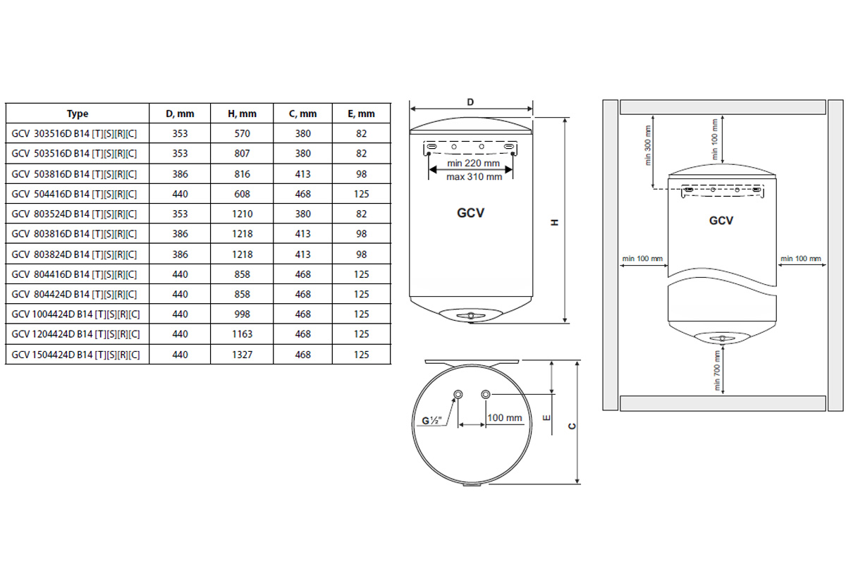 Технические характеристики бойлера Tesy Anticalc Ceramic 100: