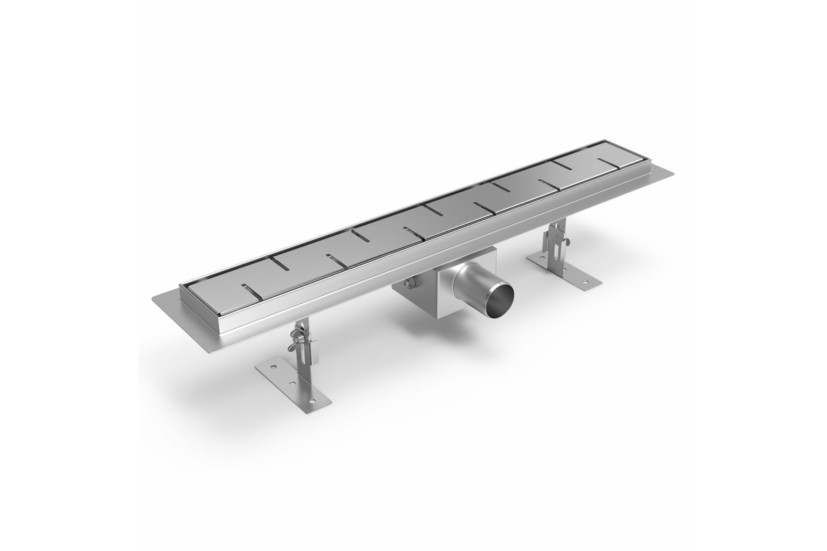 | Габаритные размеры (длина/ширина/высота) (мм) | Размеры желоба (длина/ширина) (мм) | Гидроизоляционная лента (м) | Вес с решеткой (кг) |