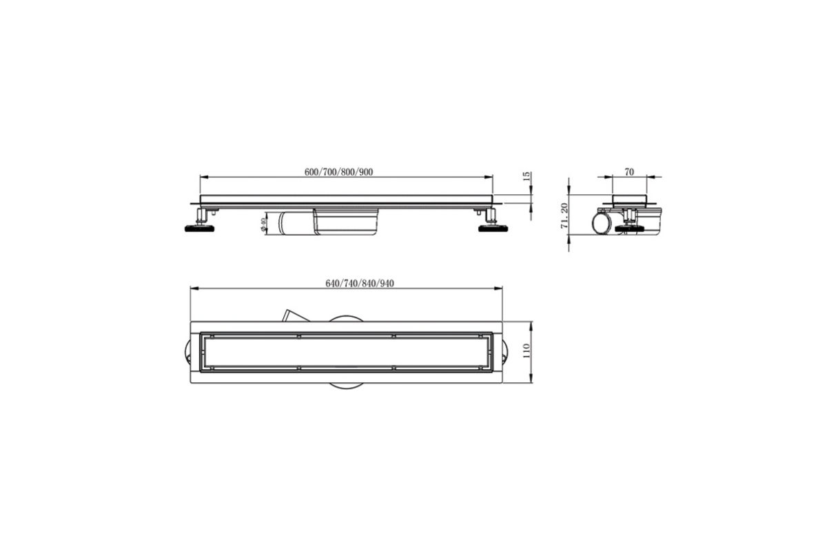 MASTER LINEA Aire лінійний трап 600мм, комбінований затвор, поворотний сифон, патрубок Ø40/50, з перфорованою решіткою, cepillado cromo.
