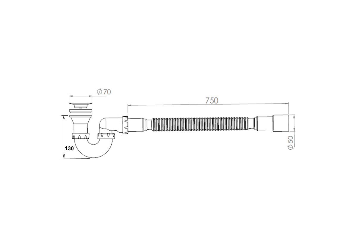 Сифон комплектується гофротрубою з універсальним виходом у каналізацію діаметром 40/50 мм. Гофротруба приєднується до сифону різьбовим з'єднанням 1 ½ з конусною прокладкою. Наявність гофротруби полегшує монтаж сифона, а універсальний вихід забезпечує підключення сифона до каналізації без додаткових редукційних перехідників.