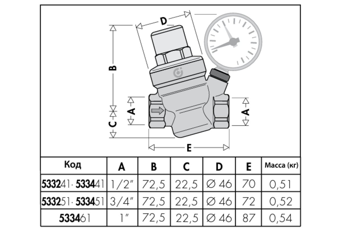 «Похила» конфігурація дозволяє редукційним клапанам тиску серії 533 набувати обмежених габаритних розмірів, які надають можливість полегшеної установки, перш за все, в побутових системах.