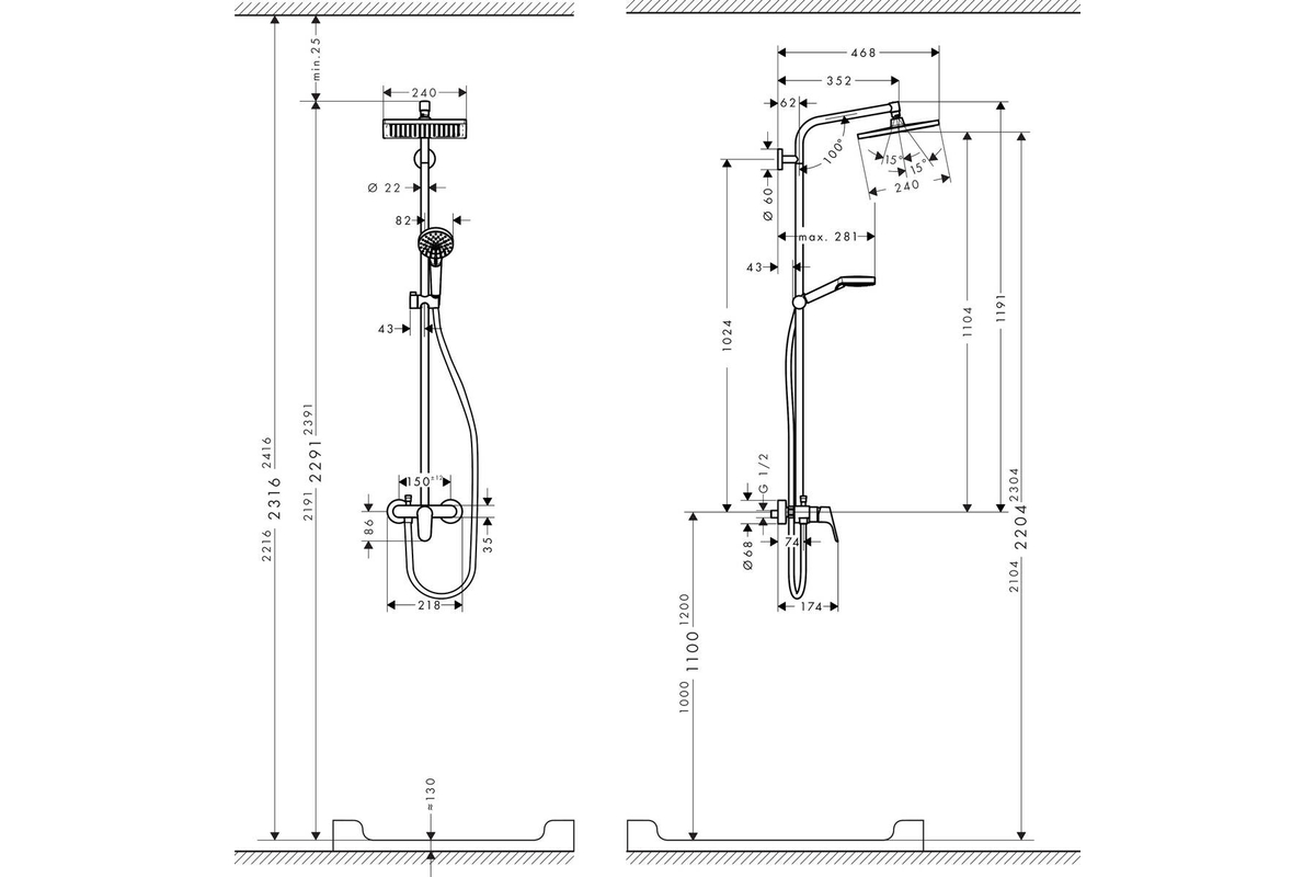 регульоване по висоті кріплення ручного душу; вид монтажу: зовнішній монтаж;