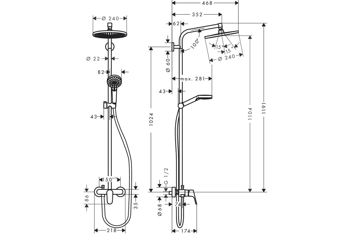 довжина тримача для душу: 350 мм;