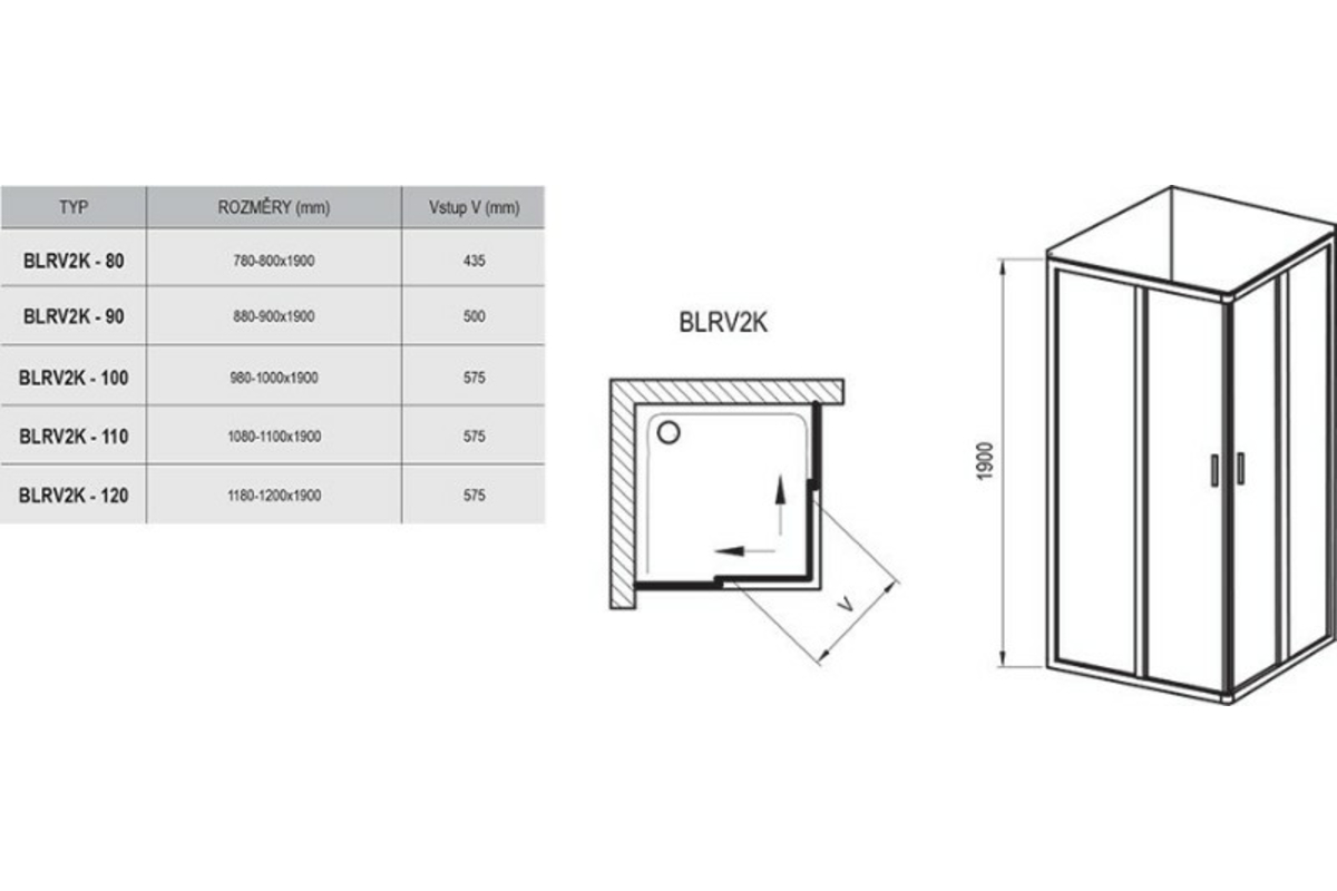 Душовий куточок прямокутний, розсувний, чотирьохелементний з кутовим входом BLRV2K + BLRV2K в сучасному виконанні