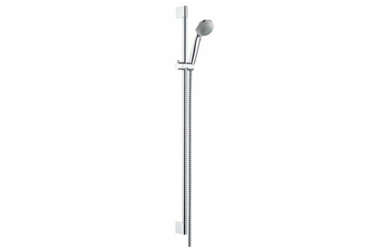Crometta 85 Душовий набір, 0,9 м. Тип струменя: звичайний струмінь, розмір душового диска: 85 mm, максимальний витрата води: 16 л/хв, пластина для виравнивания плитки (сіра).