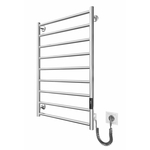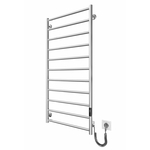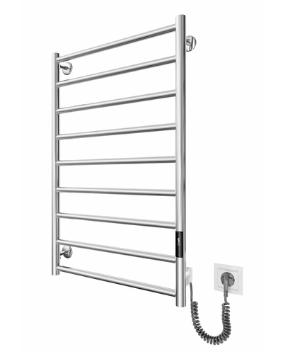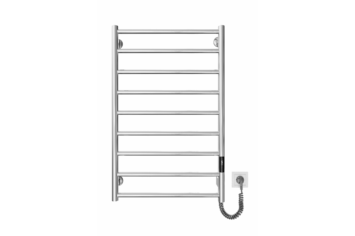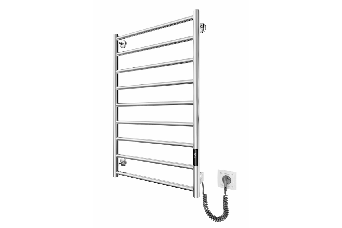Конектор для підключення в розетку з будь-якого боку. Комплект прихованого підключення. Має 9 ребер та стояки з кругллої труби. Виготовлена з полірованої нержавіючої сталі без хромування. Варіанти покриття: полірована або сатин, чорний мат, білий глянець, золото, бронза, золото сатин, білий мат. Потужність 110 Вт. Додатково для зручності користування можна оснастити гачками. Гарантія - 20 років на корпус / 5 років на електричну частину.