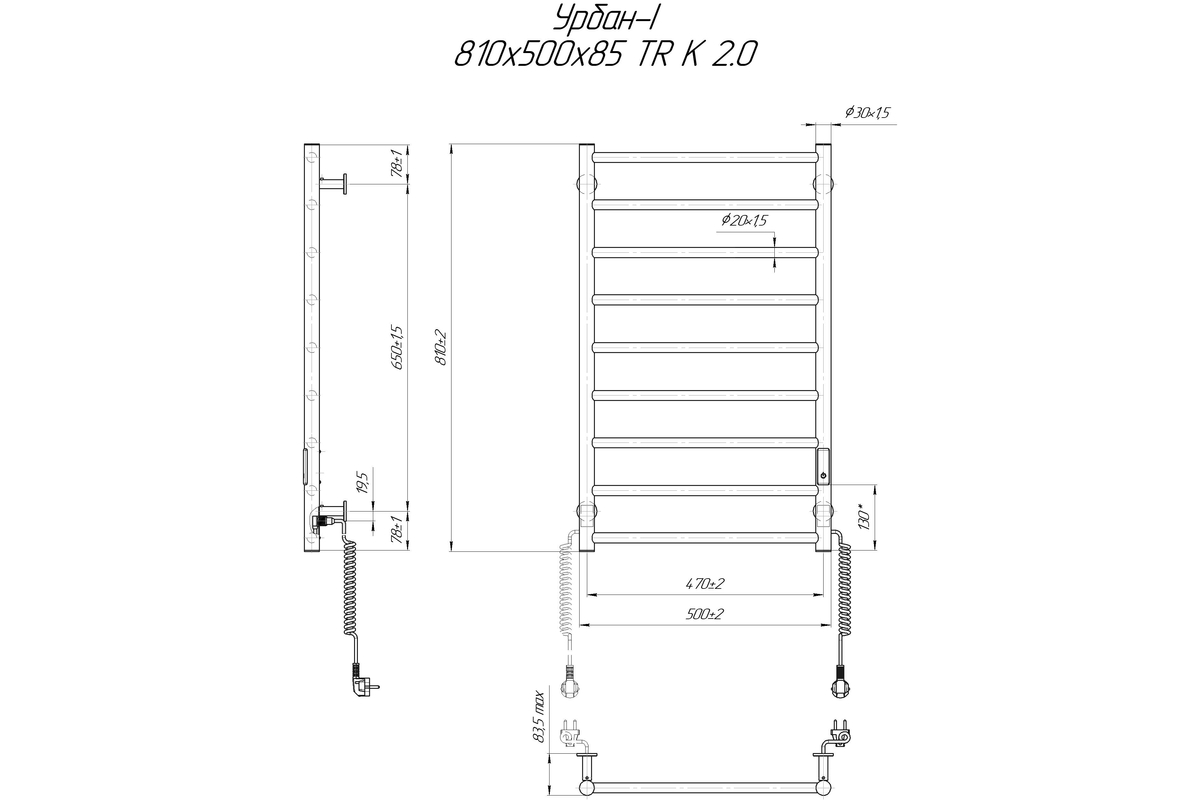 Електрична рушникосушарка Mario Урбан-I 810x500/85 TR K 2.0 таймер-регулятор