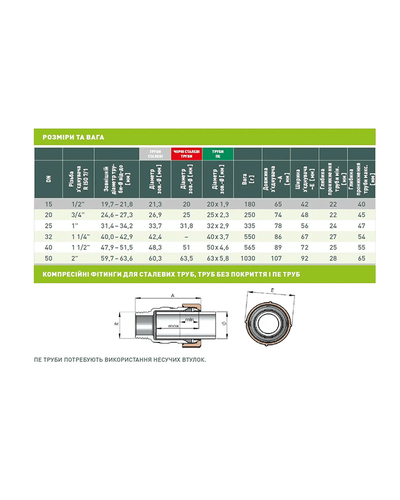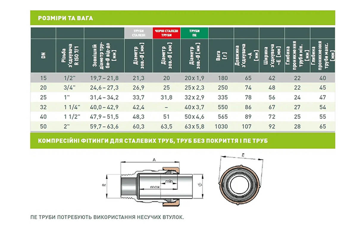 Основні характеристики муфти з'єднювальної із зовнішньою різьбою GEBO 3/4”x24,6-27,3: