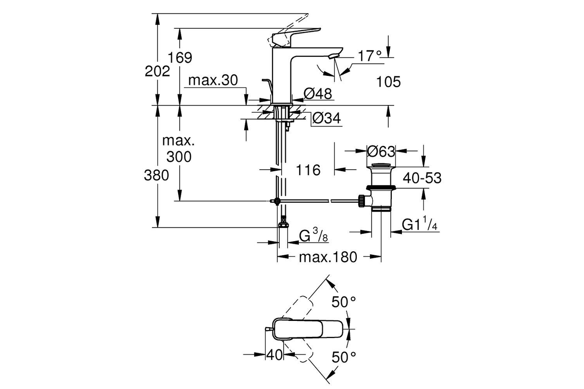 Змішувач для умивальника Grohe Cubeo М-розмір з донним клапаном чорний мат 1017492430