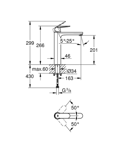 Установка на один отвір Металевий важіль Для раковин що встановлюються на стільницю