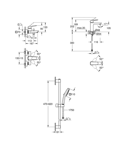 Набір змішувачів для ванни Grohe Cubeo чорний мат UA125246M243 (1018132430 + 1017552430 + 267482433)