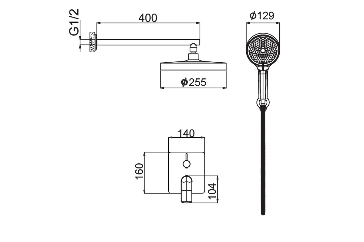 Комплектація Змішувач, тропічний душ, шланг, ручна лійка, тримач для лійки.