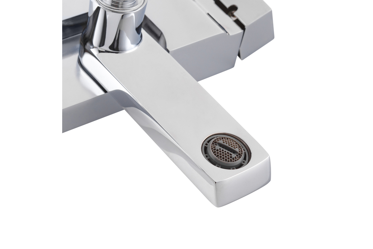 • Спеціальне технічне рішення дозволяє точно регулювати температуру гарячої і холодної води, захищає змішувач від накипу