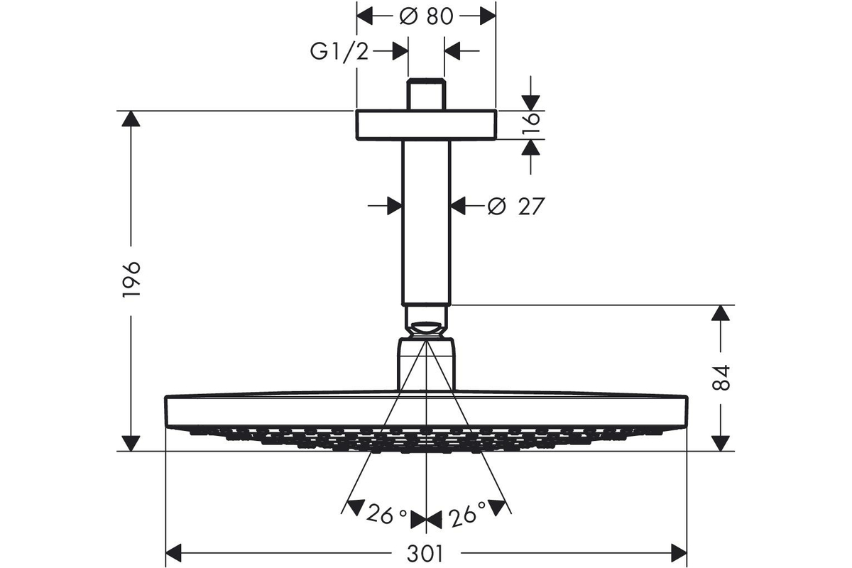 Верхній душ Hansgrohe Raindance Select S 300 2jet, білий / хром (27337400) - відрізняється ефектним виглядом, функціональністю і простотою застосування, а матеріали високої якості, з яких він виконаний, гарантують надійну роботу протягом багатьох років.