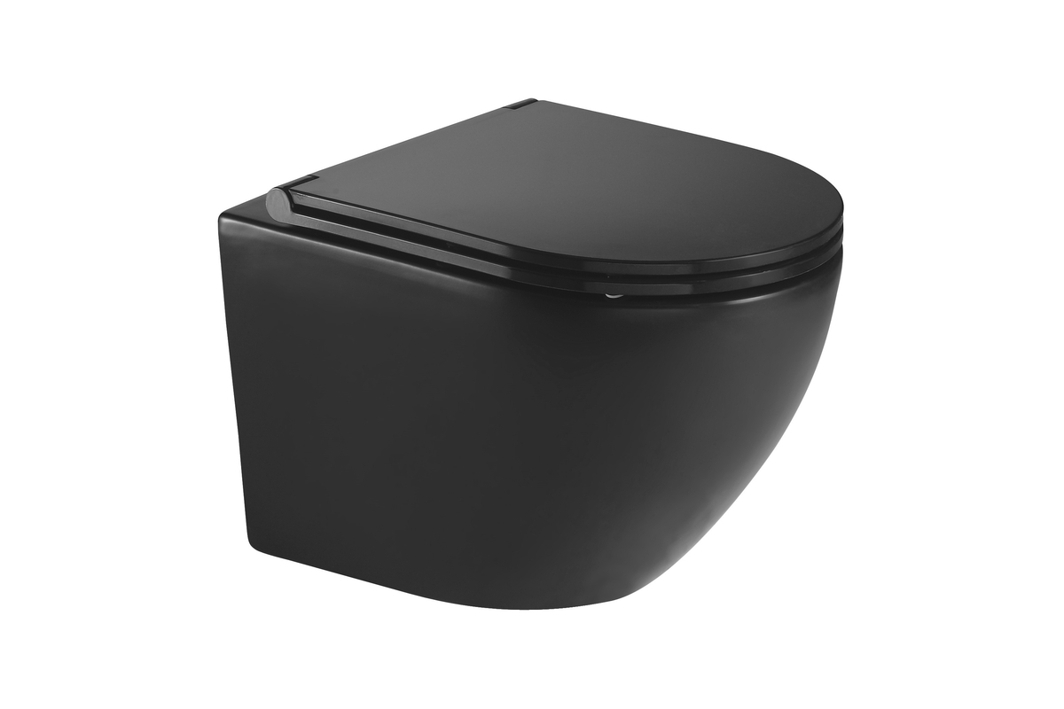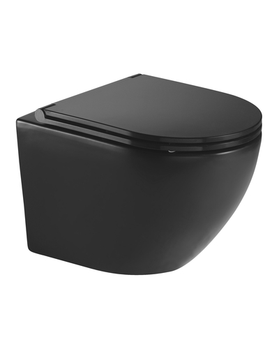 Підвісний унітаз Imprese Lesna Black Rimless 49*37*36 см, безобідковий, сидіння тверде slow-closing, чорний матовий i11546 black