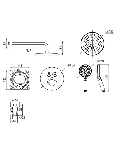 - Комплект поставки: душова система з термостатом
