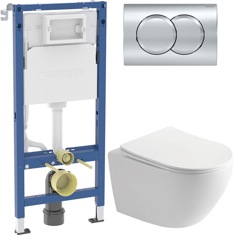 Інсталяція Geberit DuofixBasic з унітазом Rivera Ronda Rimles кнопка хром 458.103.00.2 + R0049RQS